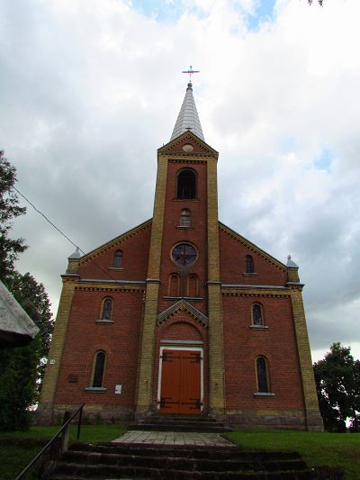 小村內有一座以紅磚建築的教堂,教堂內陳設清雅,牆上掛了一幅金色聖母像。